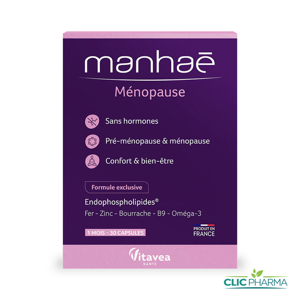Manhaé est une solution naturelle spécialement formulée pour accompagner les femmes durant la pré-ménopause et la ménopause. Sans aucune hormone, ni d’origine végétale ni synthétique, elle aide à réduire les bouffées de chaleurla nervosité et les sueurs nocturnes, tout en favorisant le bien-être général.